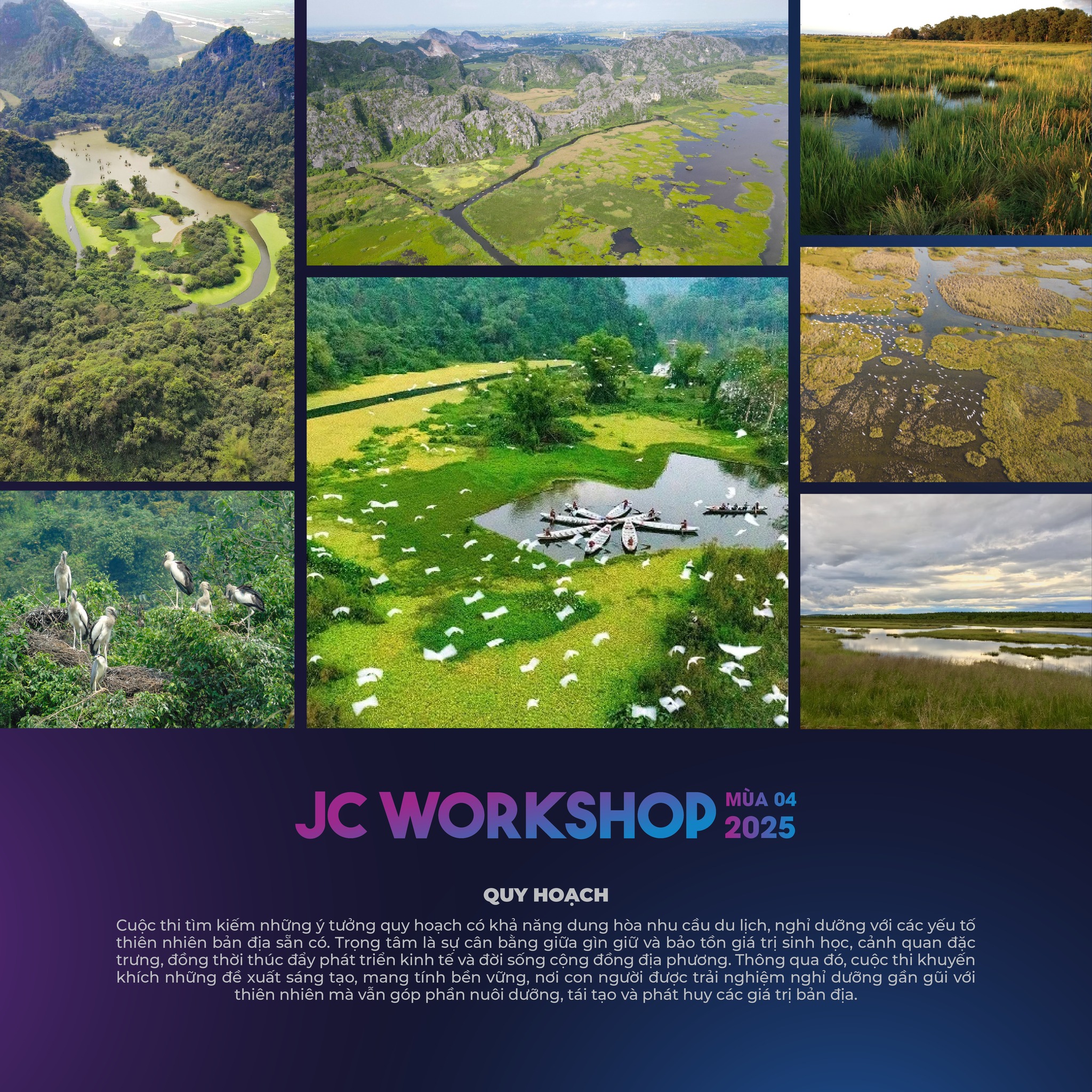 JC Workshop 2025 gồm 06 đề tài thiết kế thuộc 03 lĩnh vực: Quy hoạch, Kiến trúc và Cảnh quan, bao gồm: